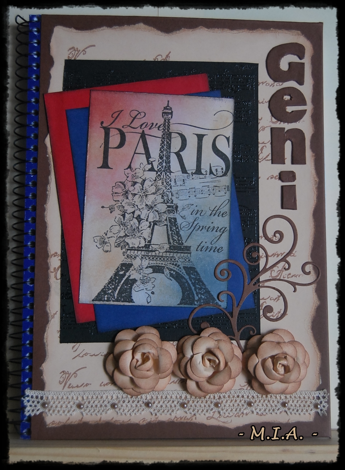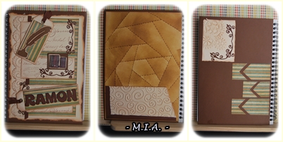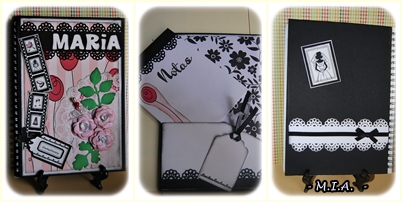 Nuevo conjunto de libretas vintage. La primera tamaño A5 y la segunda tamaño A6. El papel no sé de qué colección es porque hace mucho que lo tengo. Lo he combinado con cartulina marrón chocolate y crema. Sobre un troquel scalop ovalado he estampado "Mis notas" con tinta versafine sepia vintage. Las rosas caserasen crema van acompañadas de un troquel de hojas en cartulina marrón. ...