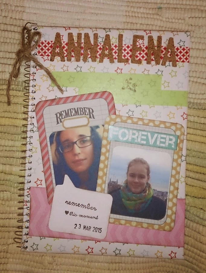 Esta vez os quiero mostrar las fotografías de dos encargos que me realizaron hace poco dos estudiantes de la ESO de aquí, de Montmeló. Hoy mismo, este domingo, han marchado para Alemania para un intercambio de estudiantes y querían obsequiar a las chicas que van a alojarlas en su casa con un regalo. Y pensaron en que les hiciera una libreta pequeña de hojas en blanco con sus nombres y fotos. Y me puse manos a la obra y os enseño el resultado.