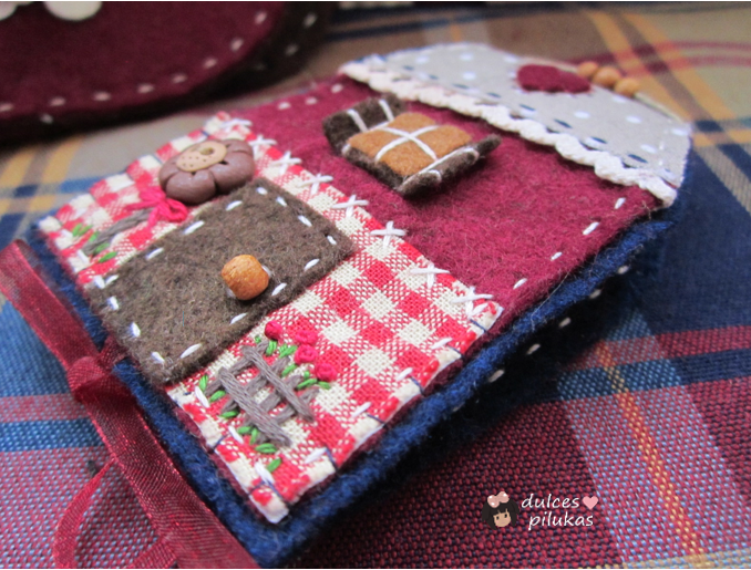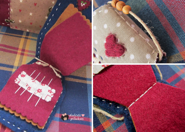 Cada hoja va decorada con un retalito de tela diferente.
