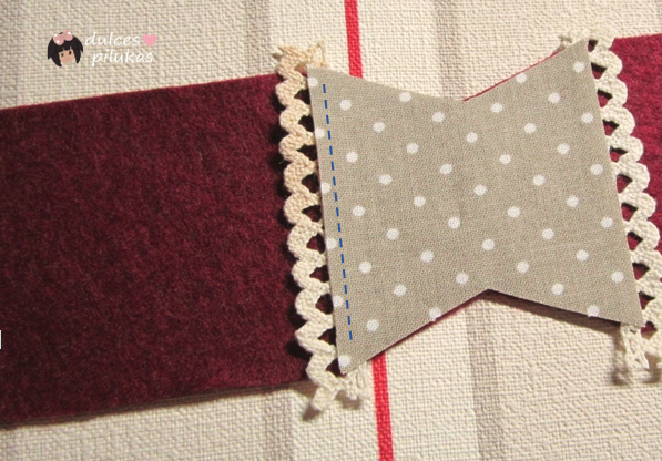Colocamos la puntilla con una puntada azul marino
