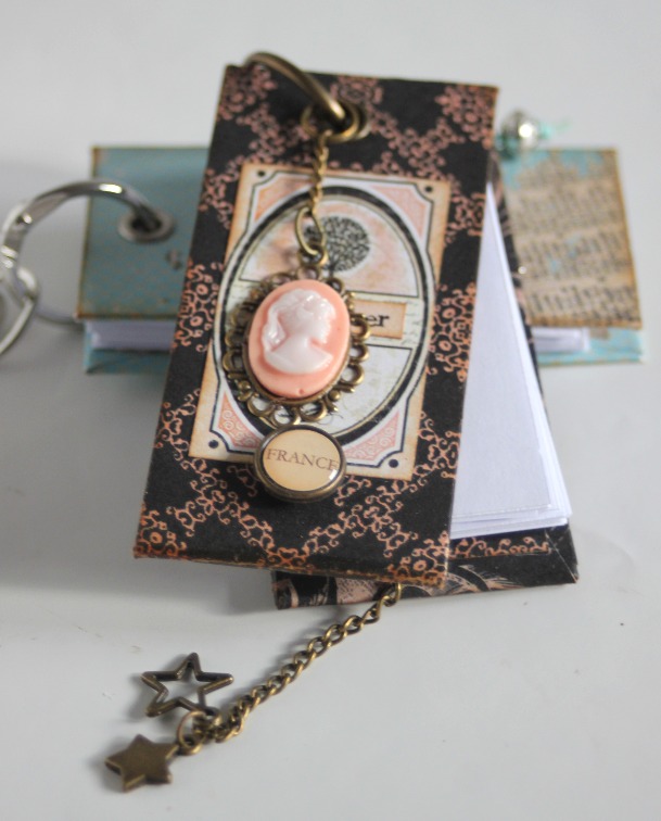 Como te lo comenté en ésta entrada donde mostré mi librito colgante, hice otros porque me parecían tan tiernos estos libros/libretas tipo llavero, y dije que te los mostraría, pues aquí están