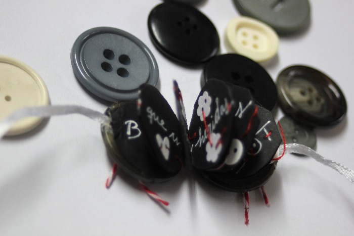 Tomé 3 colores y ya está, porque no quería saturar un espacio tan reducido, los protagonistas claro, son los botones, que unen, cierran, adornan...