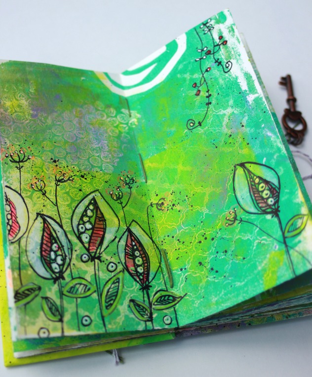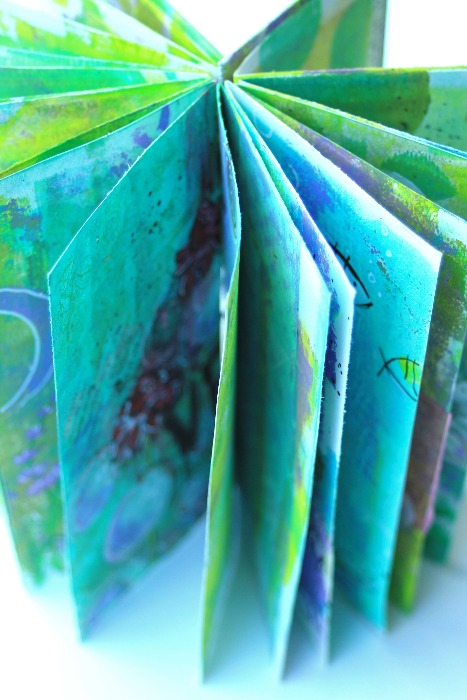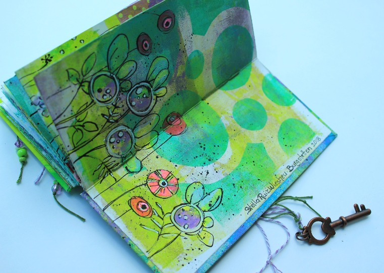 Creo que mi diversión favorita es embarrarme con mis acrílicos y si hago mis libros, nada mejor que la placa Gelli