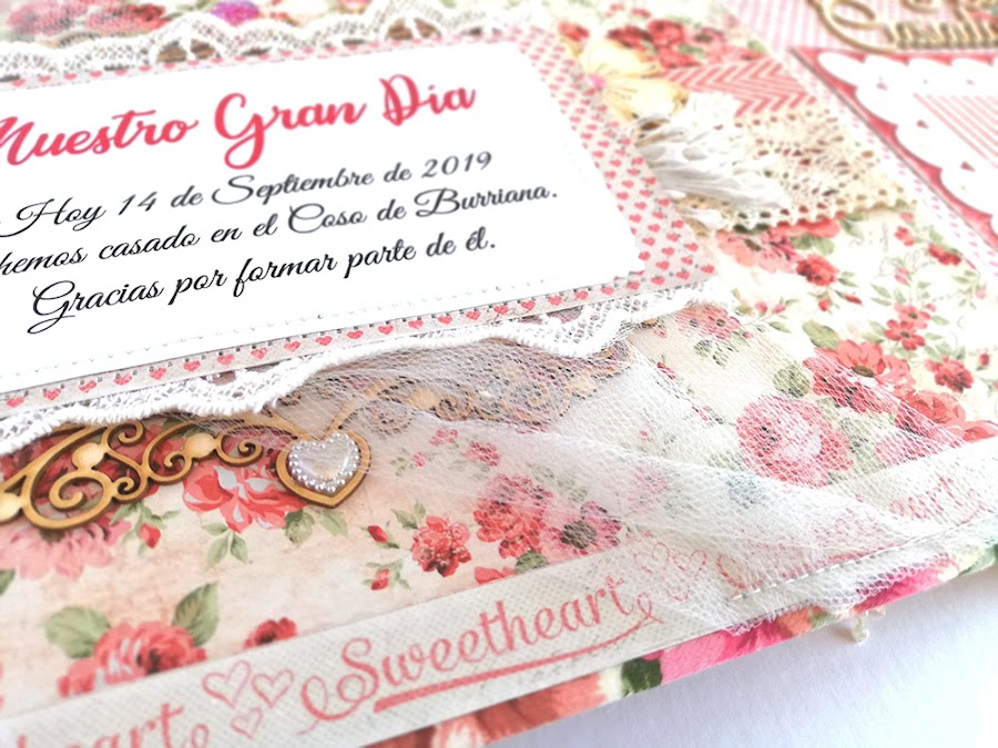 En la primera página hay un marco de media perlas donde irá la foto de los novios.