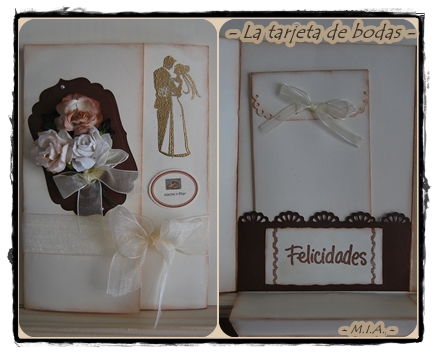 Y para terminar, les hice una tarjeta de bodas con un sobre interior dónde les meterían el regalo en dinero y en la parte de abajo un espacio suficiente para que todos los amigos les firmaran.