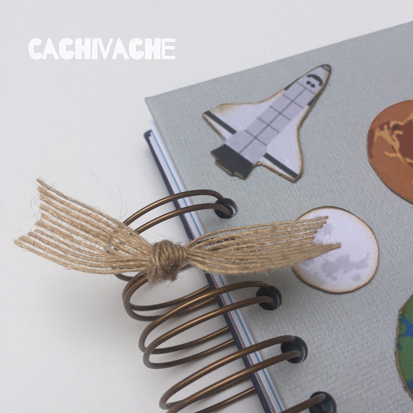 Ya habéis visto las portadas, con todos los planetas y con su nave espacial. Para que quedara más juvenil, opté por el fondo en gris y los planetas en color. Con el muelle en dorado viejo.