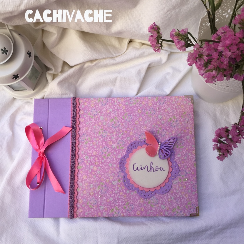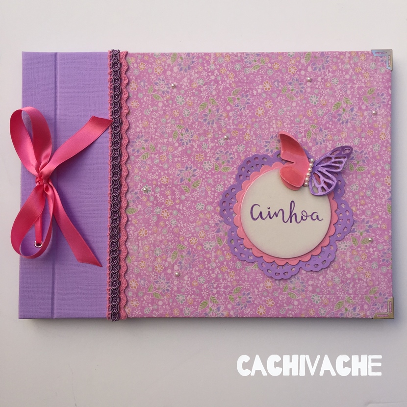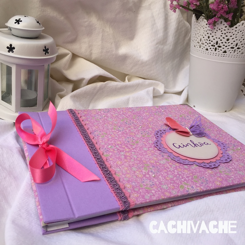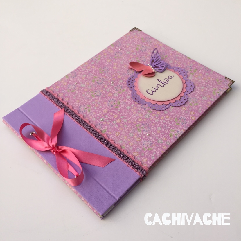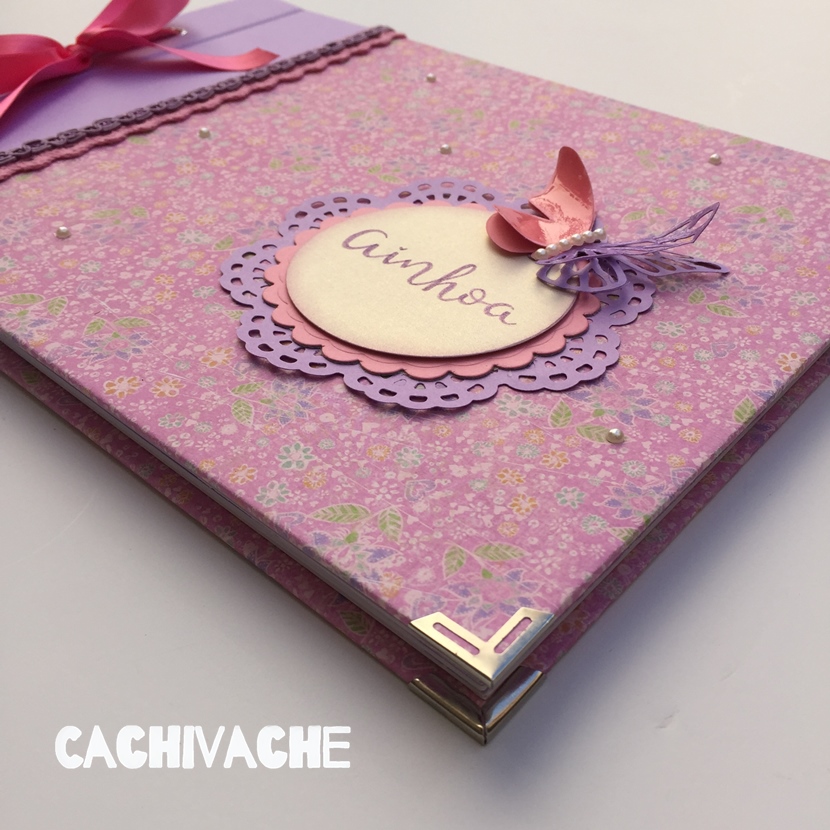 Encuadernación en lazo y unas perlas que le dan vida al conjunto.