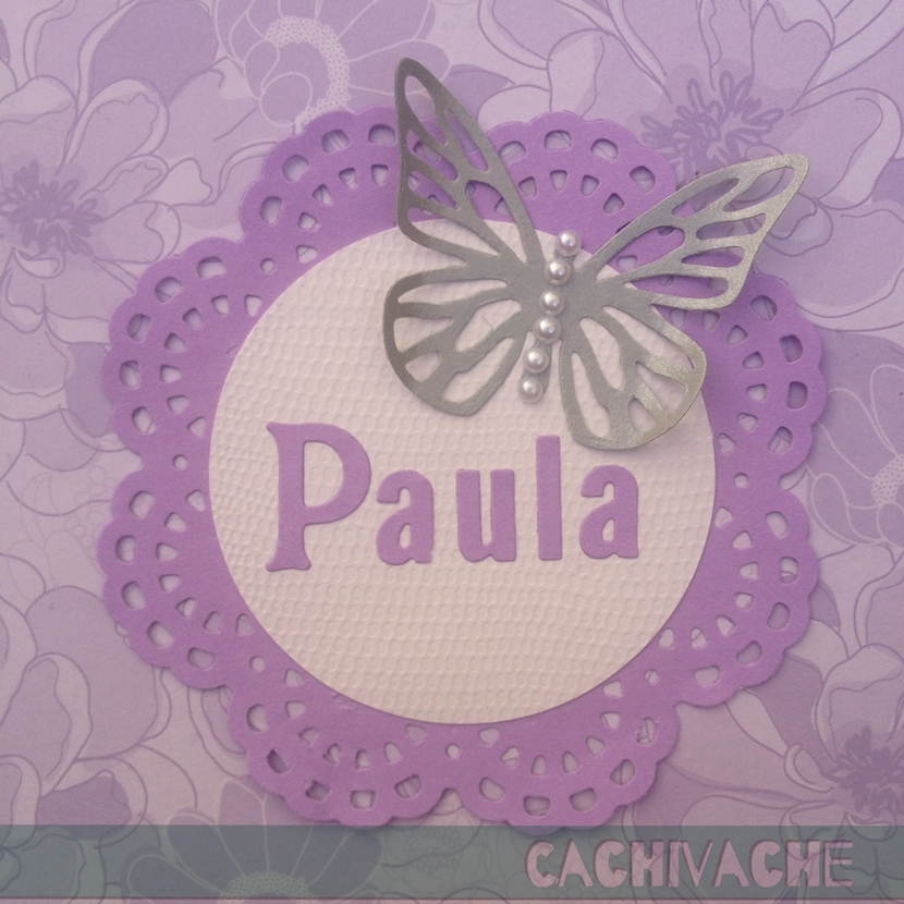 El detalle de su nombre con la mariposa como remate de la decoración.