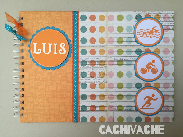 El que os voy a mostrar hoy es para Luis al que le encanta el deporte. Así que no podía ser menos, para su Comunión tendría un libro temático, dedicado al Triatlón. Y realizado con las necesidades que me dijo su mamá: