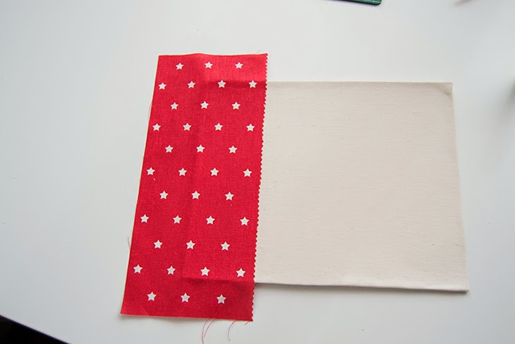 - Telas bonitas: esto va al gusto de cada uno y también se podría usar papel bonito. Yo he usado una tela beige que tenía por casa y la tela roja de estrellas que venía en la caja del DIY Hunters Day.
