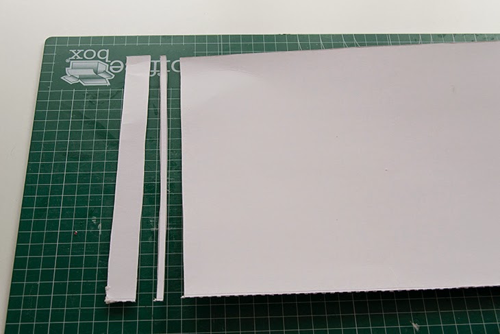 En cartón que es la tapa delantera debemos hacer una línea a un centímetro y medio del lateral izquierdo y otra a medio centímetro de la primera. Luego cortaremos por esas líneas... el rectángulo del medio no lo usaremos, simplemente sirve para dejar ese espacio y que la tapa se pueda abrir. Se ve en la foto...