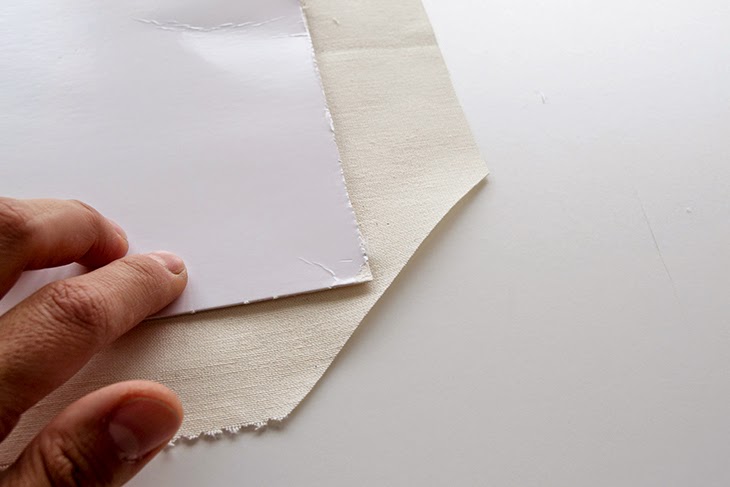 - Forramos la tapa trasera con la tela usando cola o pegamento para adherir la tela al cartón. Y por la otra cara pegamos una tela del tamaño de un dina-4.