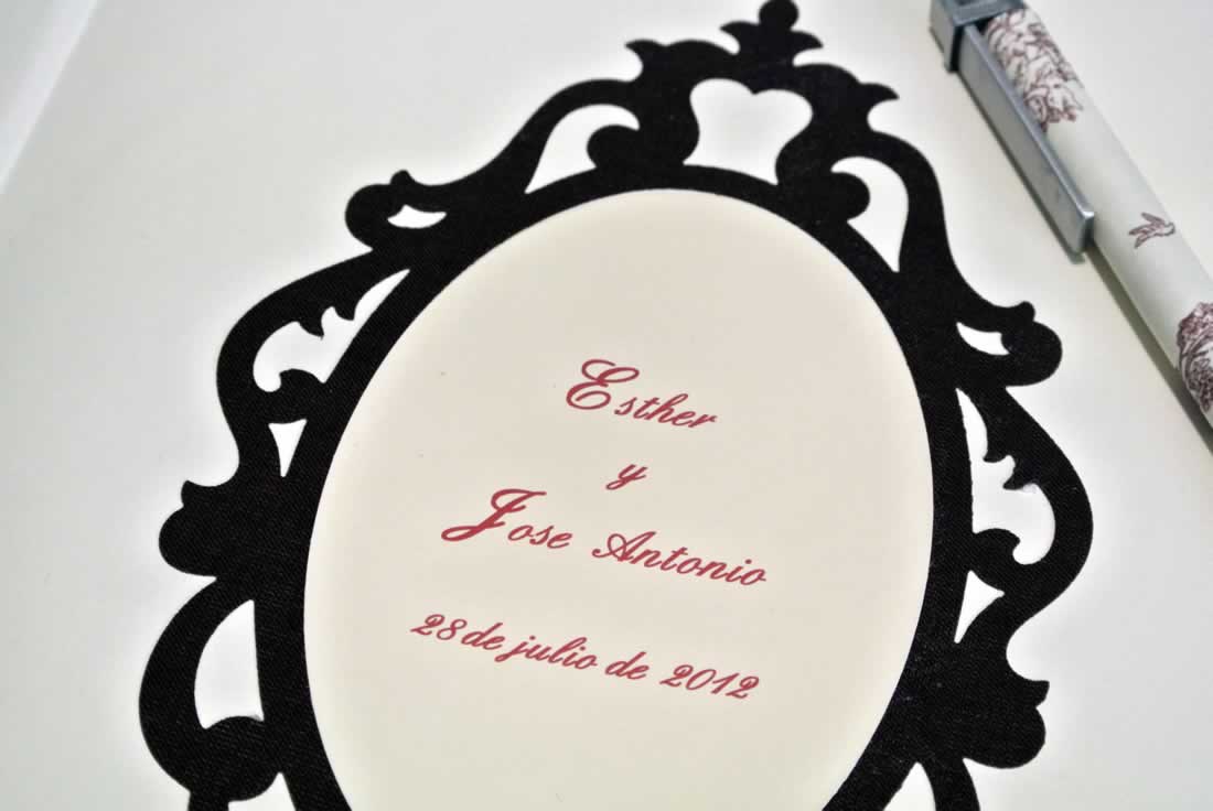 Este es el libro de firmas que eligieron con papel Toile de Jouy.