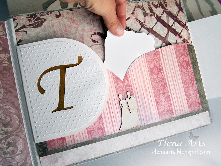 La segunda contra portada lleva un bolsillo muy original, con las letras iniciales de los nombre de los novios.