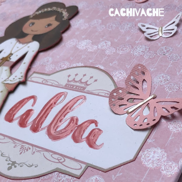 Para esta ocasión quería una muñequita de comunión en la portada con la fecha del evento y su nombre...