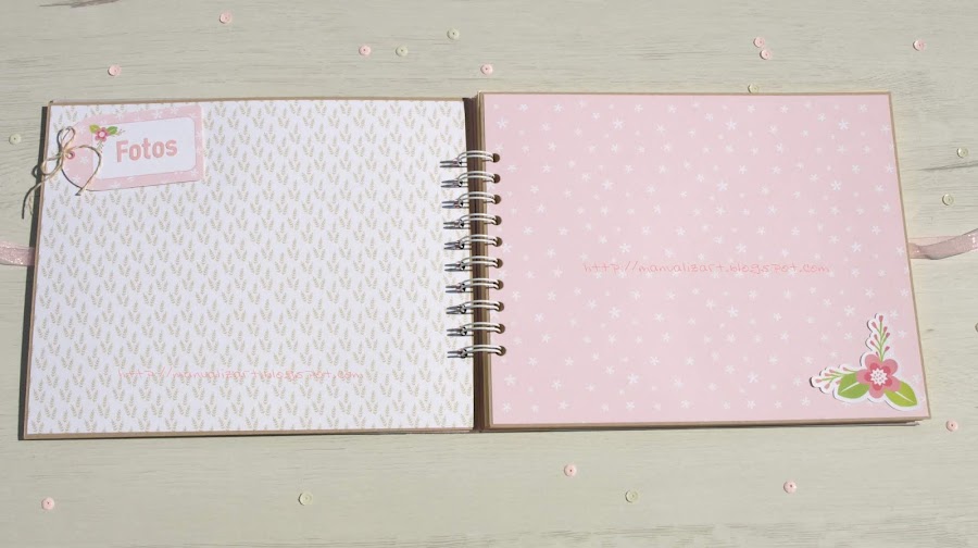 El abecedario adhesivo que usé para escribir las palabras "Fotos" y "Firmas" es de Elles Studio, en color Light Pink, que le venía genial al tono de rosa que predomina en la colección. En estas páginas no coloqué nada para indicar dónde irían las fotos porque así la niña podría decidir dónde y cómo colocarlas.