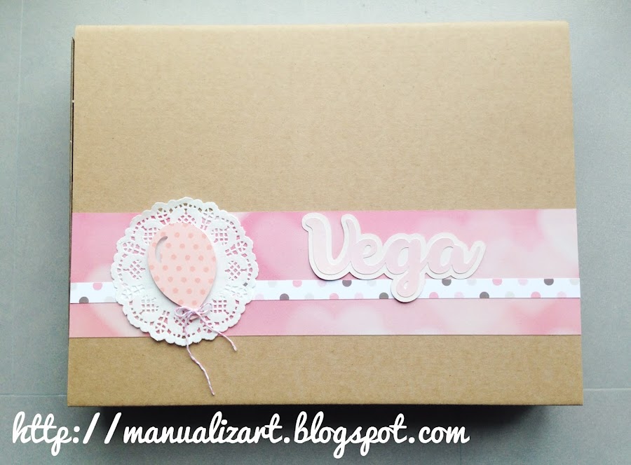 Como podréis intuir, este primer libro de firmas lo he hecho para una niña. Y, como en otras ocasiones, preparé también la cajita en la que iría guardado. El estilo predominante, como viene siendo costumbre en mí, sencillo y dulce a partes iguales. Y, esta vez, le he querido dar un toque algo más festivo a las páginas destinadas a las fotos, adornándolas con globos.