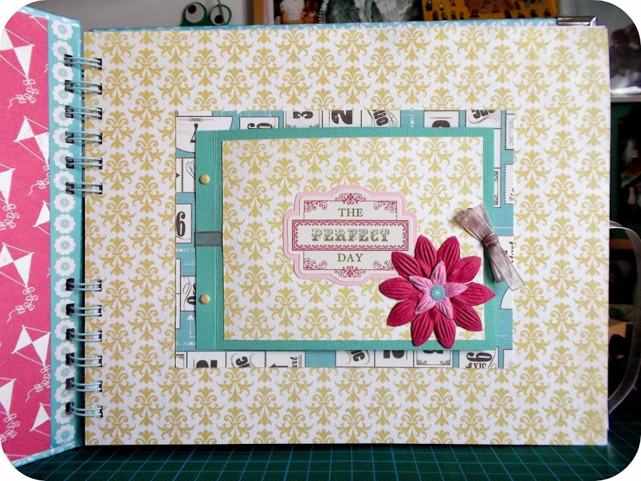 Aquí un detalle de la mini-libreta, decorada con pegatinas de la colección. La flor es un recorte de los papeles y en los puntitos del centro lleva Glossy Accents, aunque en la foto no se aprecia.