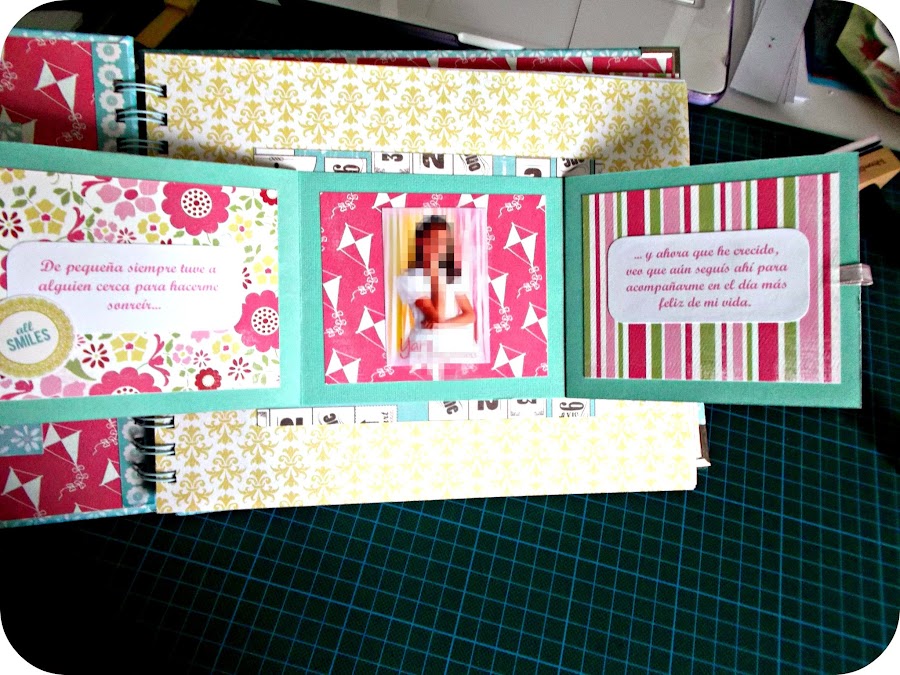 Y cuando se abre la otra solapa aparece una foto de comunión de la niña y la continuación del texto anterior ("...y ahora que he crecido, veo que aún seguís ahí para acompañarme en el día más feliz de mi vida").