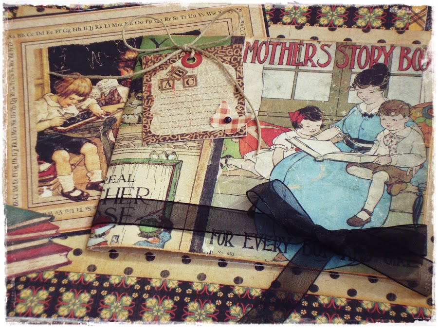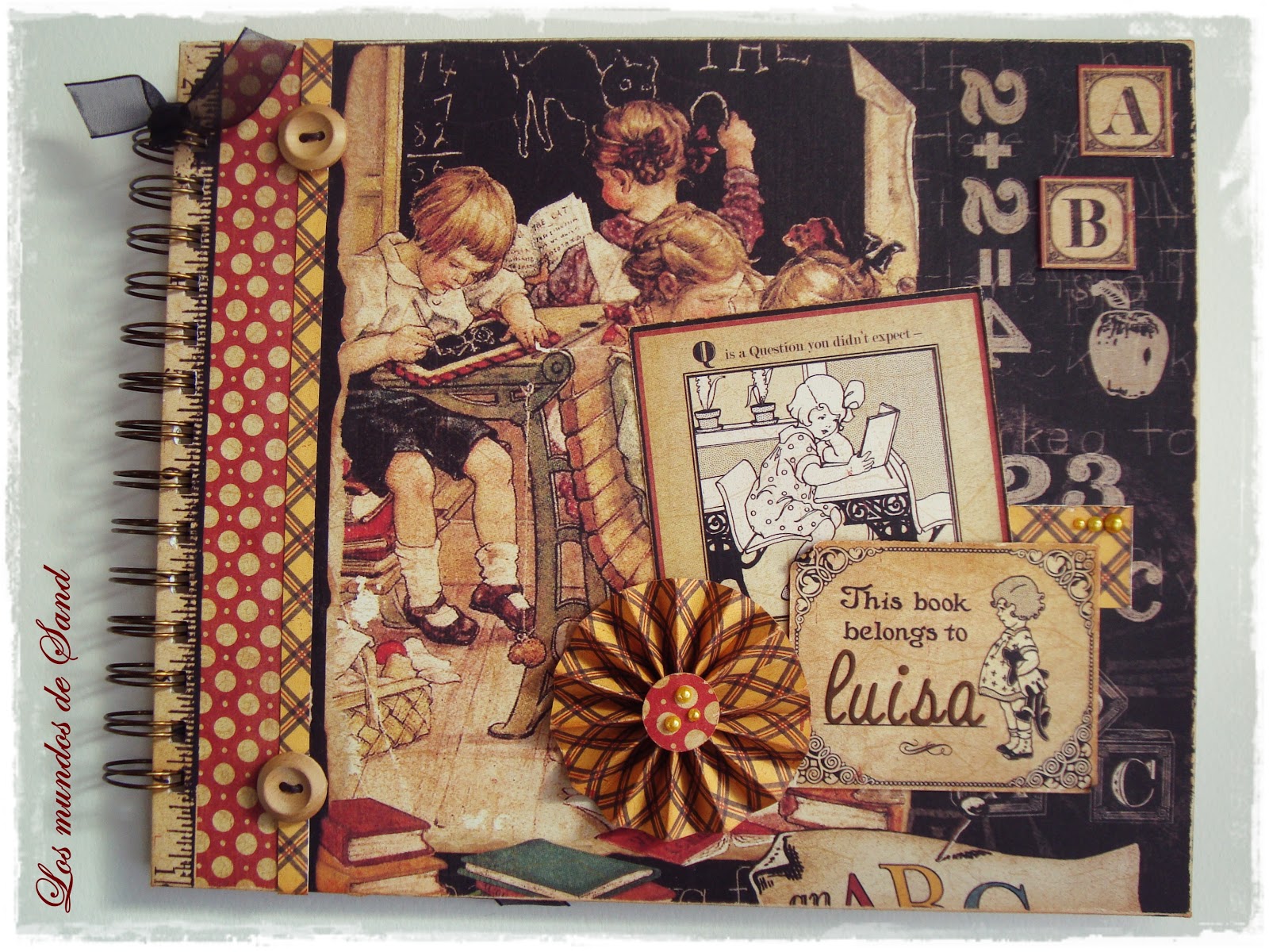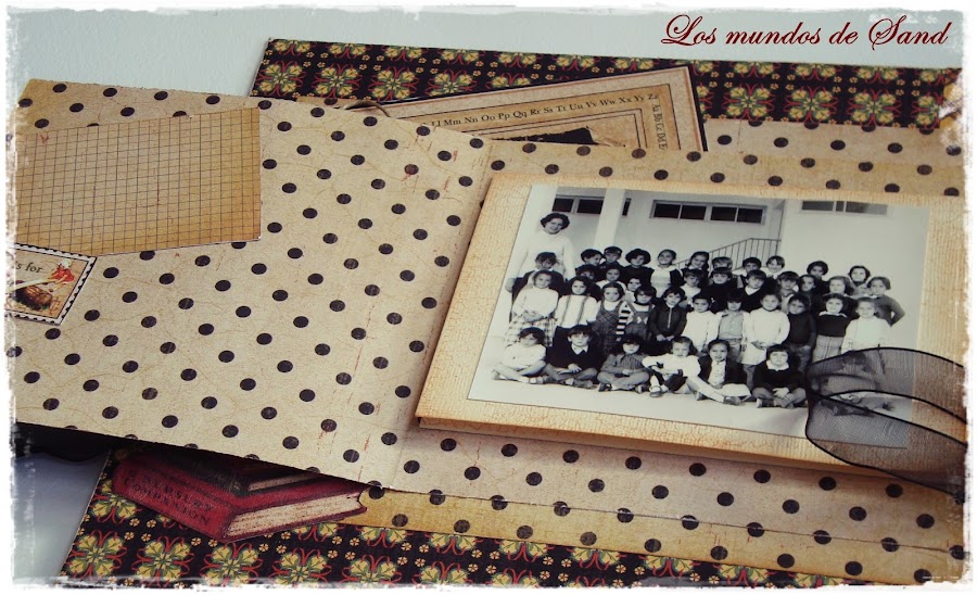 La portada es vintage en la línea de los papeles, pero quería darle un toque femenino con esa flor en acordeón, que como veis conecta con el resto de los elementos de la portada. Aparte, aquí cabe decir que me HORRORIZA la parte del papel que he tapado con esa linda niña leyendo... quienes tengáis el papel entendereis porqué...
