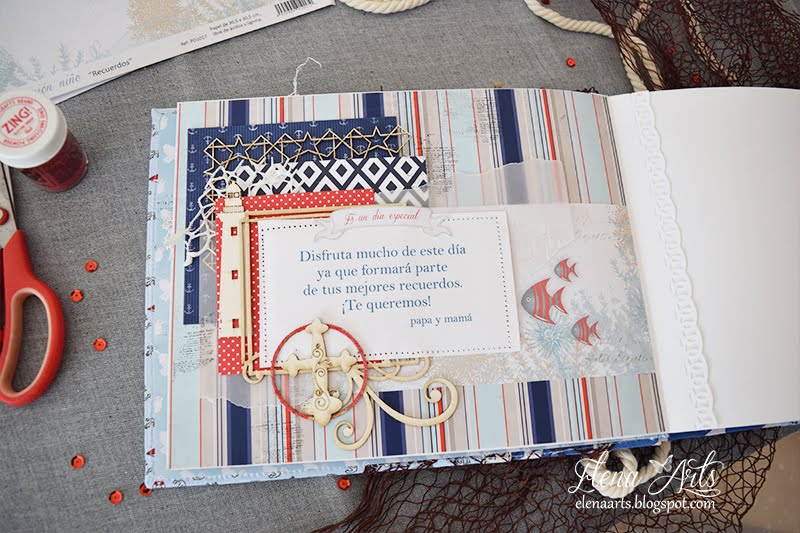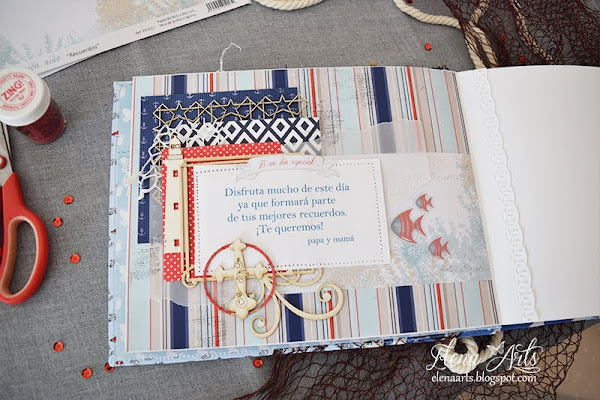 Pero no compartir mis trabajos tampoco me gusta. Así que allí va, un libro de firmas para Comunión de Manuel, de temática marinera.
