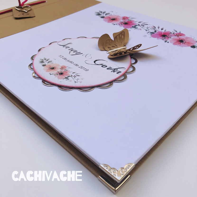 Saray quería algo muy especial para recordar el día de su boda. Como hacemos todas empezó a buscar ideas y contactó conmigo al gustarle la idea de que el libro de firmas para su boda fuera a juego con su tarjeta de invitación de boda...