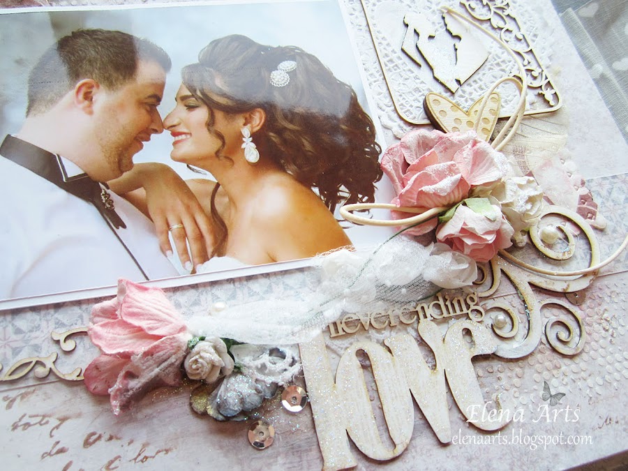 Me gustan las flores en mis proyectos, le dan un aire muy romántico y elegante. Igual que aquí en la portada, he utilizado unas cuantas rosas y las cubrí con purpurina.