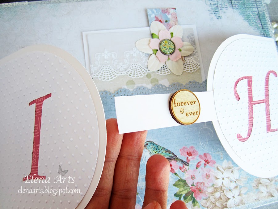 Hay unos toques de brillo en las flores y en algunas partes. Los chipboard enriquecen la página y su color natural es precioso.