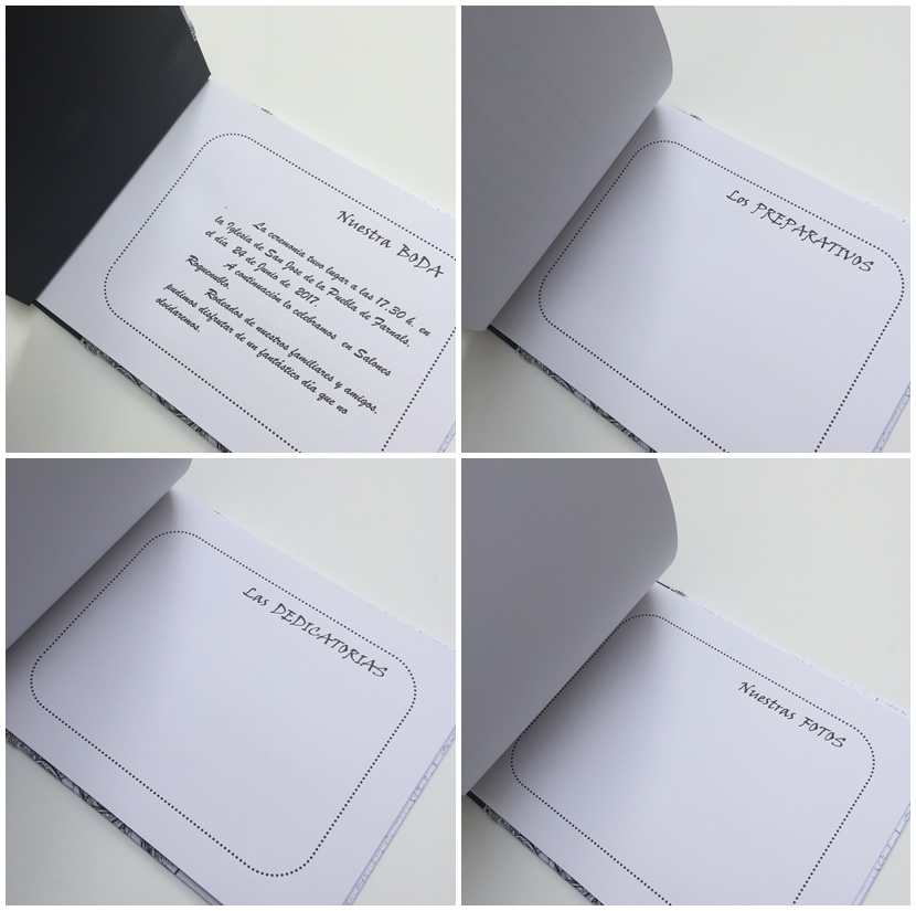En este caso el libro de firmas solo lleva sus iniciales en la portada, pues el papel elegido tiene su protagonismo...