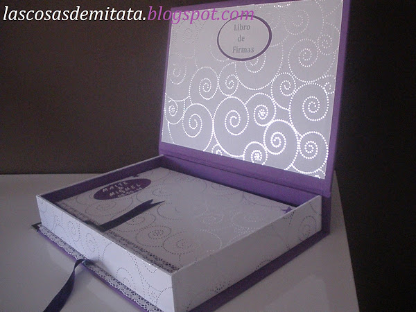 Sonia ( hermana del novio) fue quien me hizo el encargo y sus requisitos principales eran nada de estampados florales, nada de muñequitos ni corazones, sólo papel fino y elegante. Así que después de mucho pensar me decanté por este tan maravilloso con fondo blanco (ideal para boda) y espirales con destellos en plata, pero que según como le de la luz se aprecian o no.
