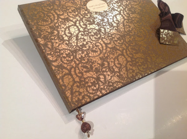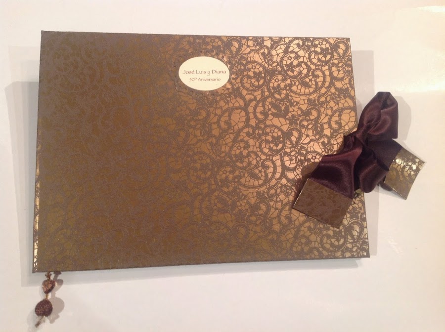 Libro de firmas para Bodas de Oro, realizado en oro brocado (en el mismo material hay más colores, rosa viejo, morado, negro, blanco)
