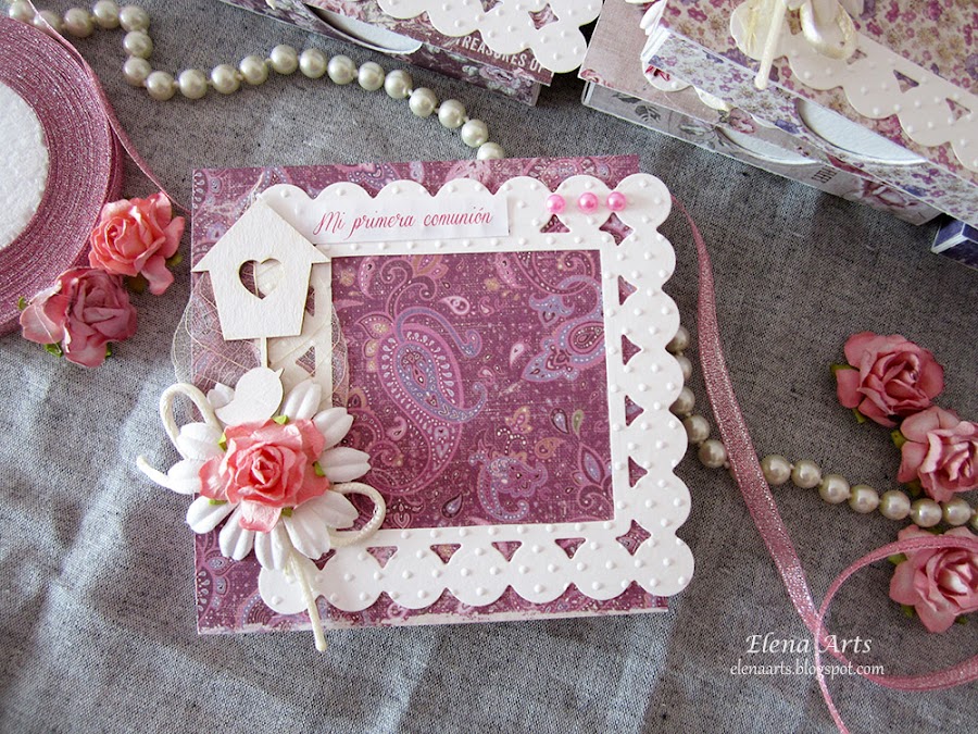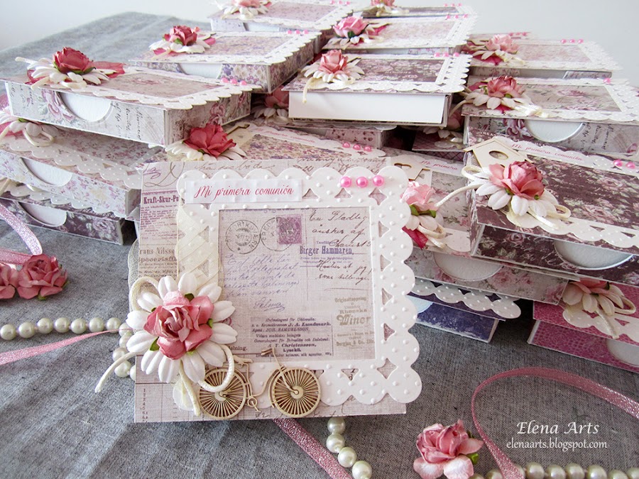 Los protagonistas de hoy son el libro de firmas, las invitaciones y los detalles que hice para la Primera Comunión de Alba. Todo está hecho del mismo estilo Shabby Chic, con los papeles de Maja Desing y guardando la misma apariencia.