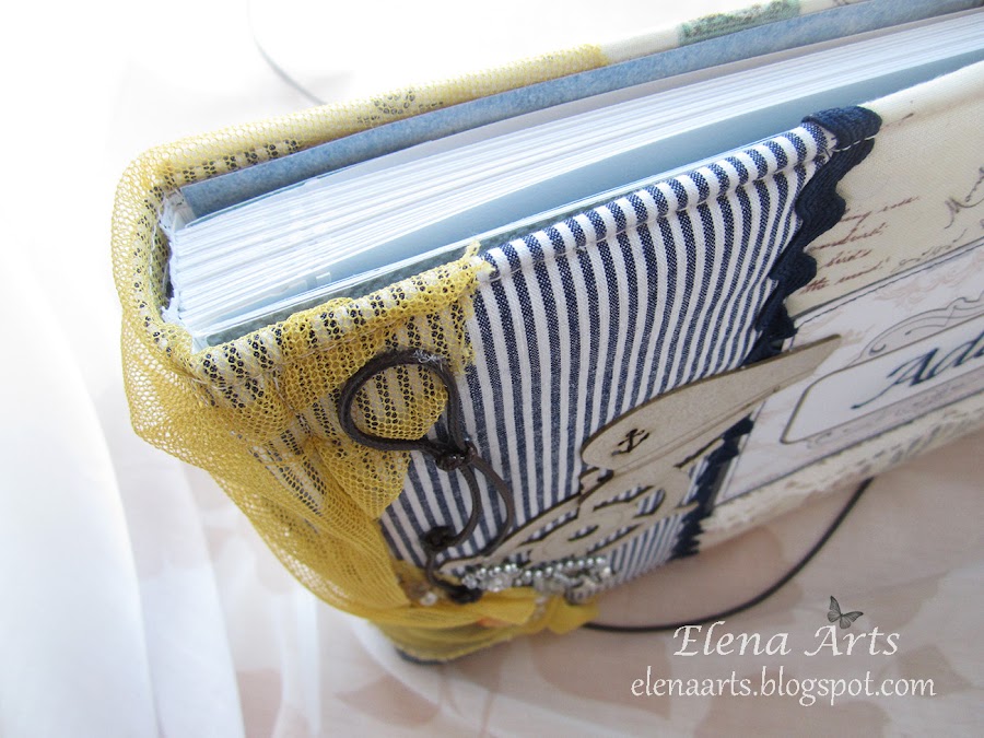 Así, pues hice este libro de firmas para la Primera Comunión de Adan. El tamaño es de 21 x 30 cm, el diseño es en tonos azules y amarillos, al estilo marinero. Las tapas son acolchadas, forradas de tela de algodón. Todo está cosido a máquina, para que sea fuerte y duradero.
