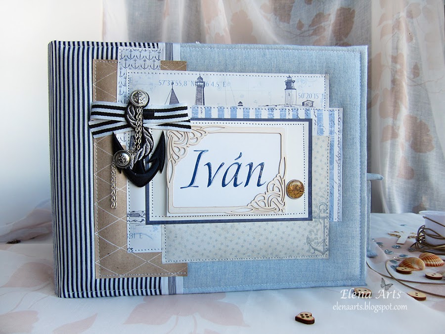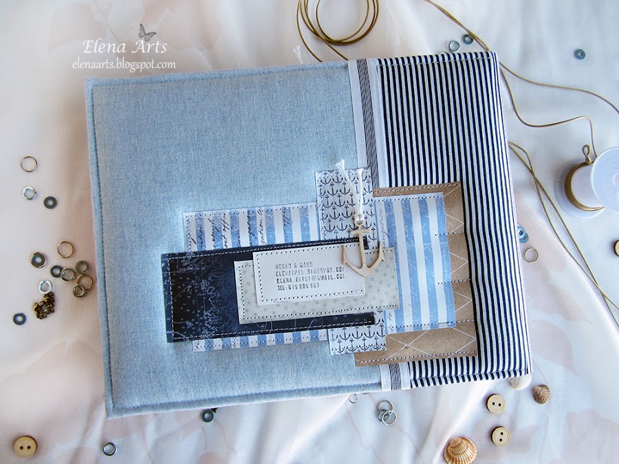 También hice la caja para guardar el libro dentro utilizando la misma tela de lino azul, papeles decorados y como elemento principal también puse un ancla de madera.