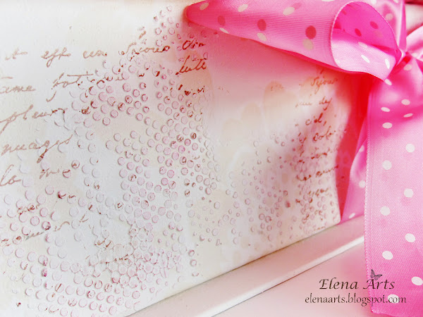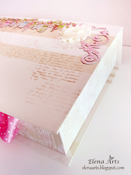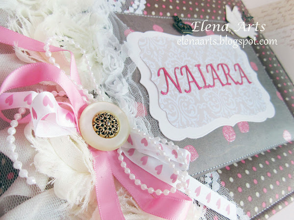 Las tapas son acolchadas, forradas de tela de algodón de unos lunares preciosos. Para decorarlas, he utilizado un encaje blanco, unas rosas de tela de color crudo, unas cintas, un botón muy bonito, una paloma cubierta de glitter y una corona metálica. Todo está bien cosido y sujeto :)
