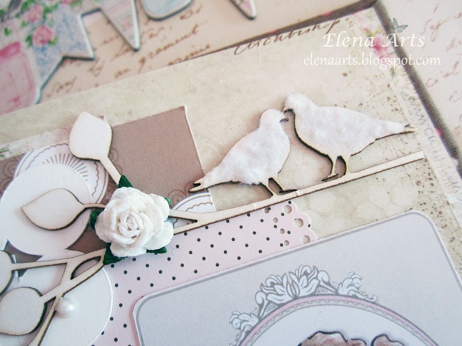 El chipboard de palomas es precioso, está cubierto con el polvo de terciopelo, queda moníiiisimo!