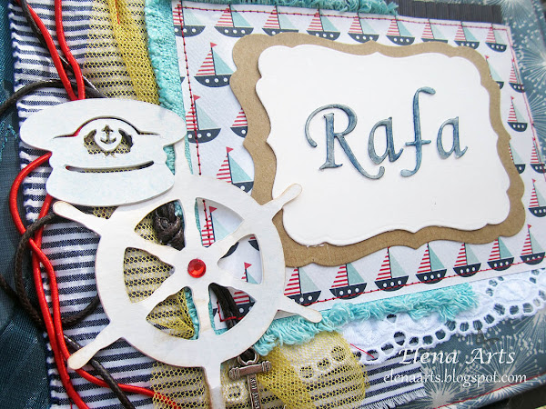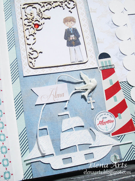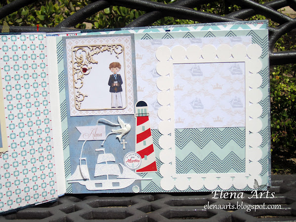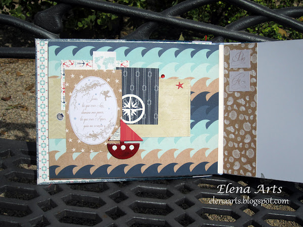 En la parte trasera he puesto un texto, un mensaje biblico y toda la decoración gira alrededor al mar: un velero rojo, unas olas, una brujula, unas anclas, unas conchas, etc...