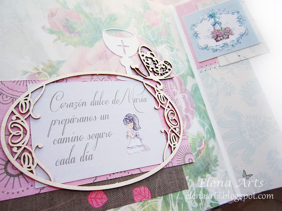 En otra página puse un mensaje de la primera comunión, enmarcado en precioso marco con una mariposa.