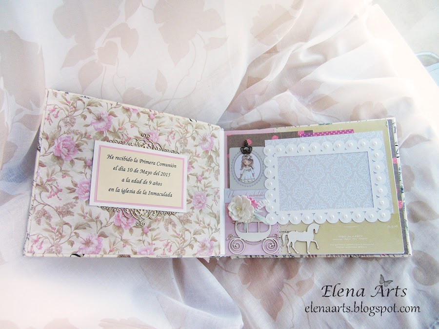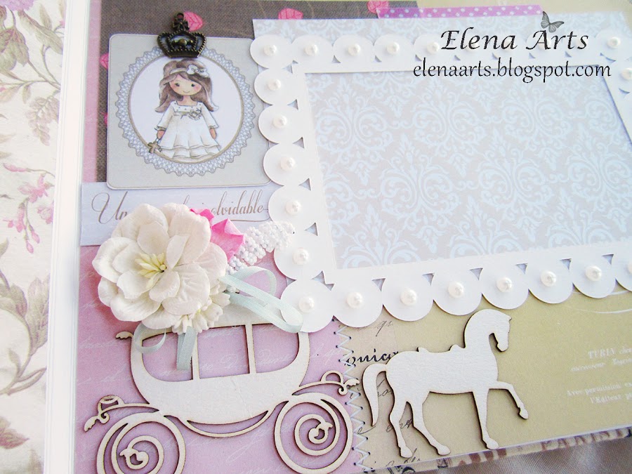 En la primera página irá la foto de María que estaría dentro del marco decorado con perlitas. Además, he puesto un carruaje real con un caballo blanco :))).