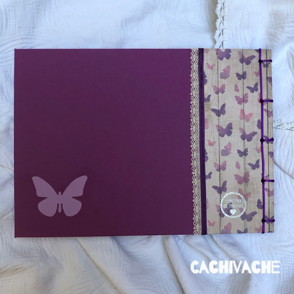 Un libro de firmas en tonos morados y con unas mariposas para una decoración muy romántica...