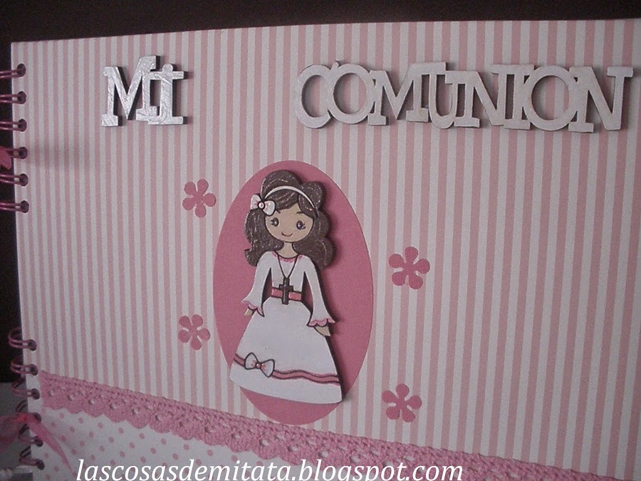 Hoy os enseño un Libro de Firmas para la Comunión de Laura, es hija de una prima de mi marido, y quiso encargármelo. Como me dio vía libre pues elegí la combinacion de topitos y rayas rosas, espero que le guste a mi me ha enamorado!