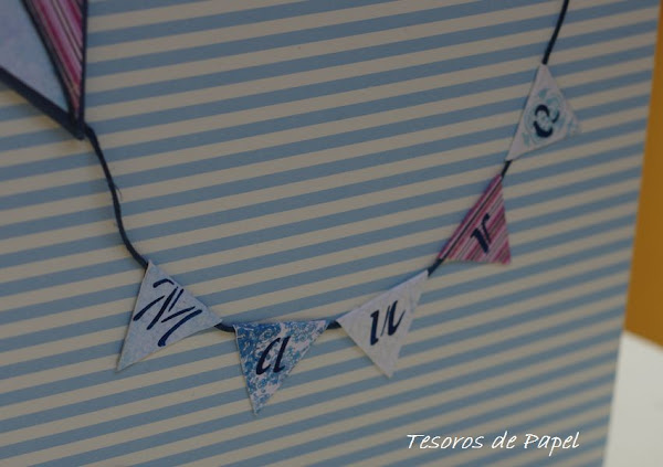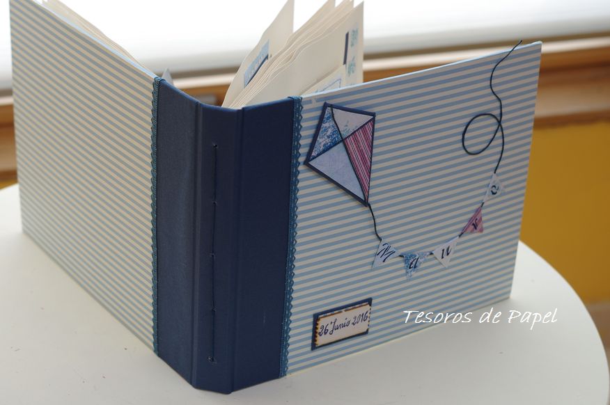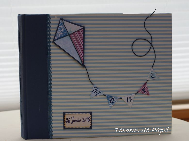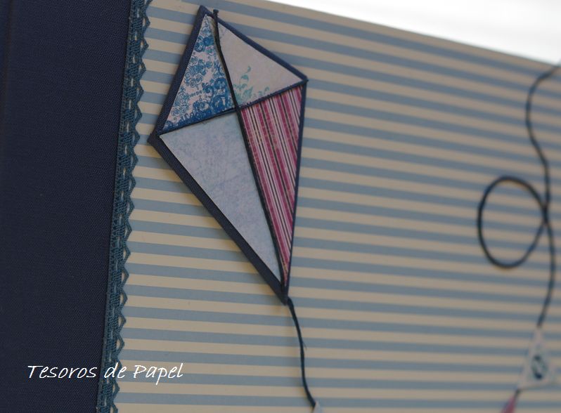 Aquí hemos sido un poco clásicas, y hemos utilizado tonos azules, rayas... y como motivo central una gran cometa.
