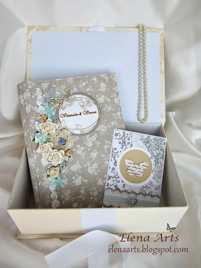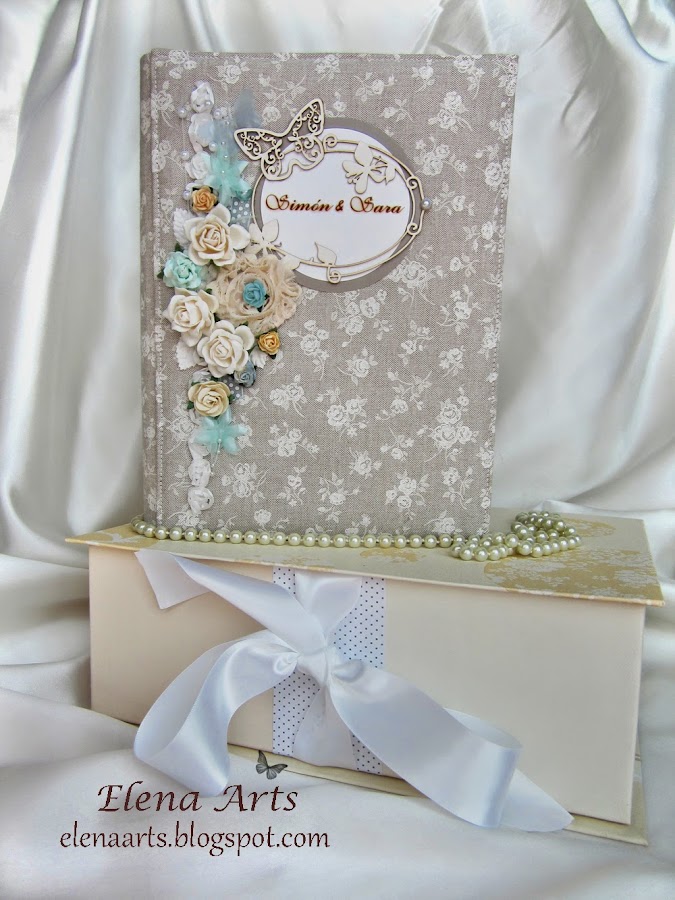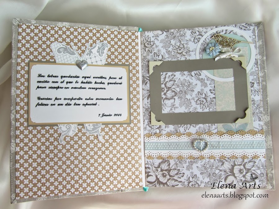 La primera página tiene un sitio para poner una foto de los novios y en otro lado por la petición de la persona que me encargó el libro (un besito guapa!!;) puse un texto de agradecimiento.
