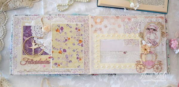 Caja a juego, con tapa tapizada y decorada con un marco de chipboard de Kora projects y flores de tela y papel. Colección de papeles Magic Day de Kora projects entre otros papels. Un poco de encaje y mucho amor!
