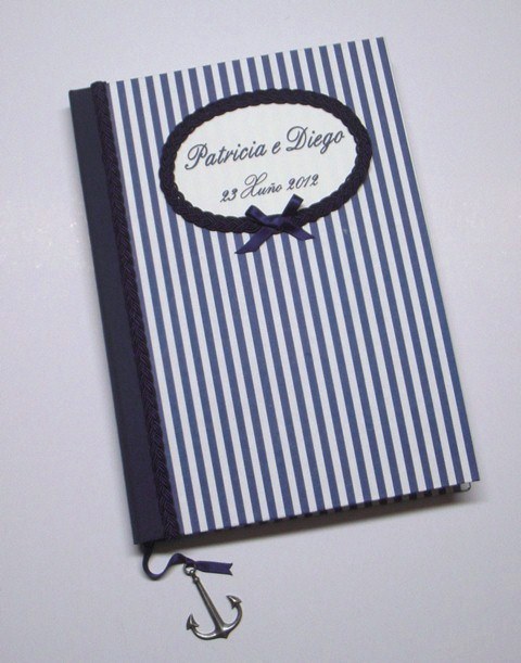 Patricia vio que hace unos meses yo había hecho un libro de firmas de estilo naval. Quería uno parecido para su boda, y una caja grande a juego para poner unos muñecos. Espero que le guste. Gracias Patricia por tu amabilidad y por confiar en mí.