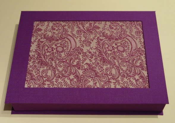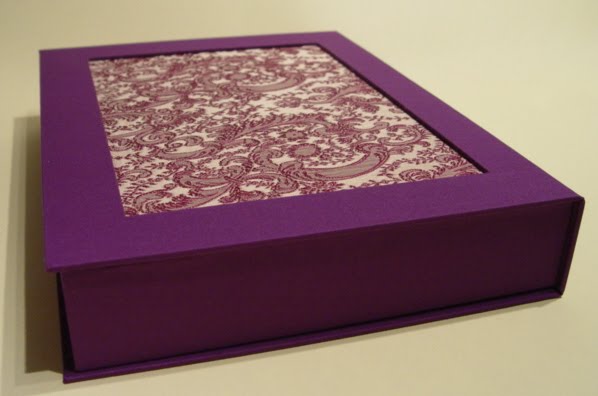 Rocío se casó el 19 de Marzo, me encargó su libro de firmas y la caja para guardarlo, le encanta el color morado, así que me facilitó la tela que le gustó para su libro, y este es el resultado, espero que haya gustado, personalmente me encanta el resultado final, espero que a vosotros también!