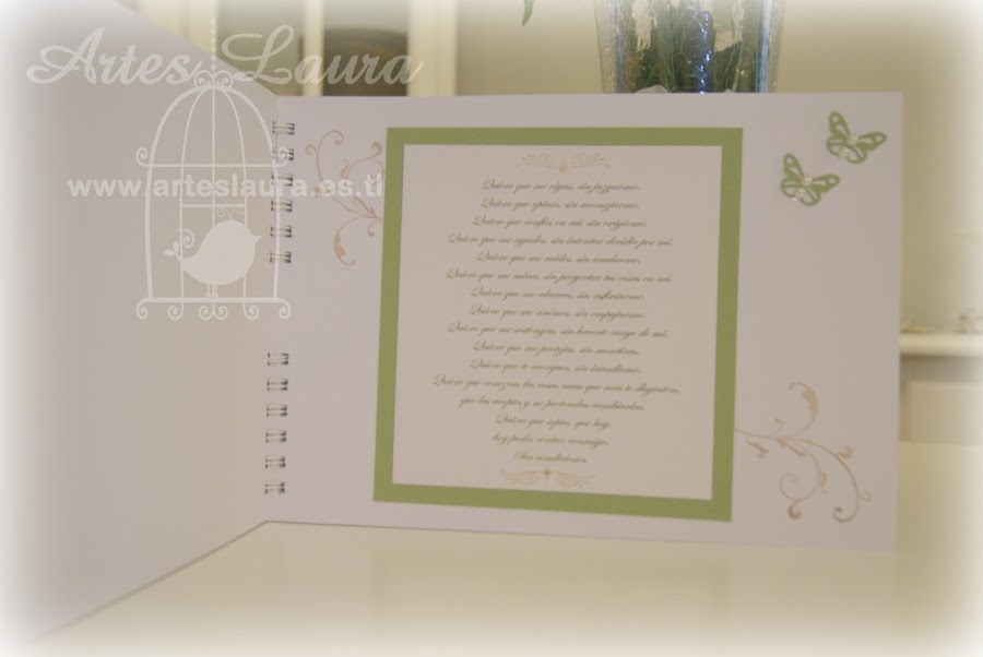 Buenos días!!! Hoy os muestro el libro de firmas que Sandra me pidió para su boda!!! Como todos los libros que hago es personalizado y Sandra me lo puso muy fácil pues estuvo en todo momento de acuerdo con lo que yo le iba diciendo!!! En esta ocasión el papel decorado va en el lomo, tiene textura y con motivos muy elegantes. Para el lazo escogí cinta de raso en color blanco... Para rematar las ...