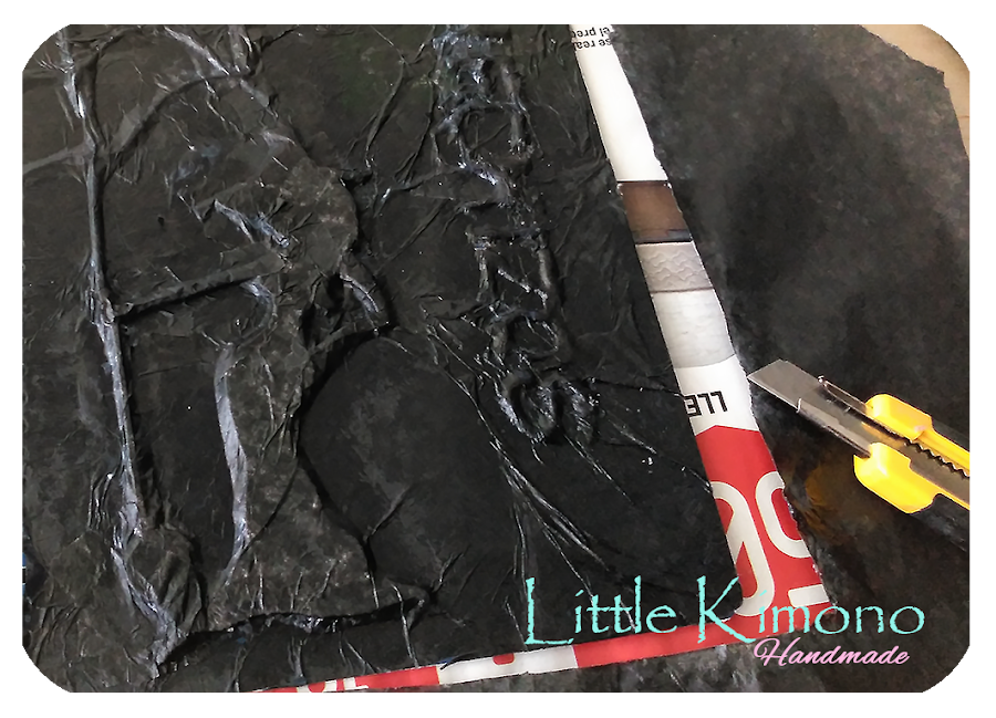 4. Dejamos secar y cortamos los excedentes de papel seda.