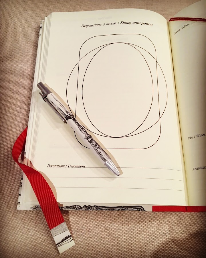 Libro de firmas en tamaño A4 y libro de invitados en tamaño A5 con ilustraciones para anotar el sitting de la mesa, menú etc