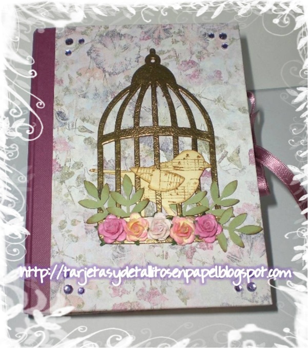 ?He usado la plantilla de pájaro y jaula de Tim Holtz, que también está de moda últimamente.